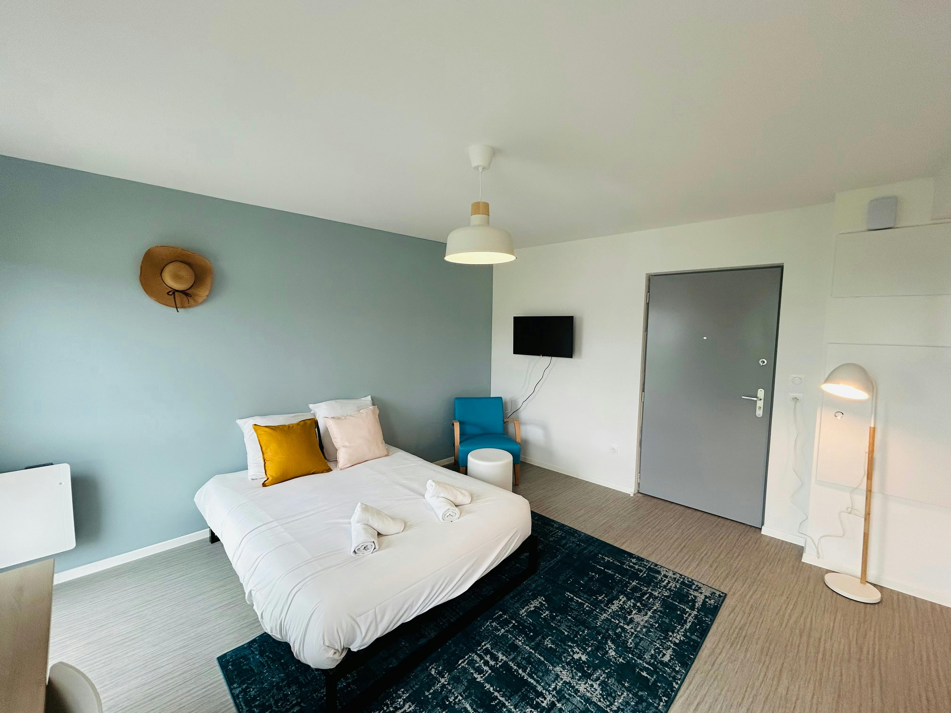 Discover our superb furnished studio in a new building, ideally located in the city center of Reims. Perfect for short, medium or long stays, this studio offers modern comfort with all amenities included.
