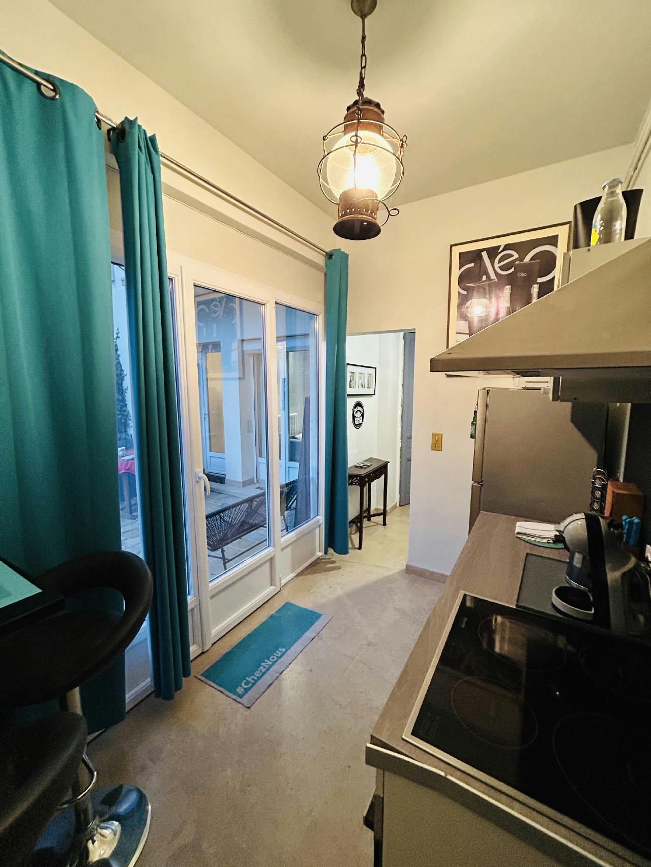A fitted and equipped kitchen with dining area and access to the garden.