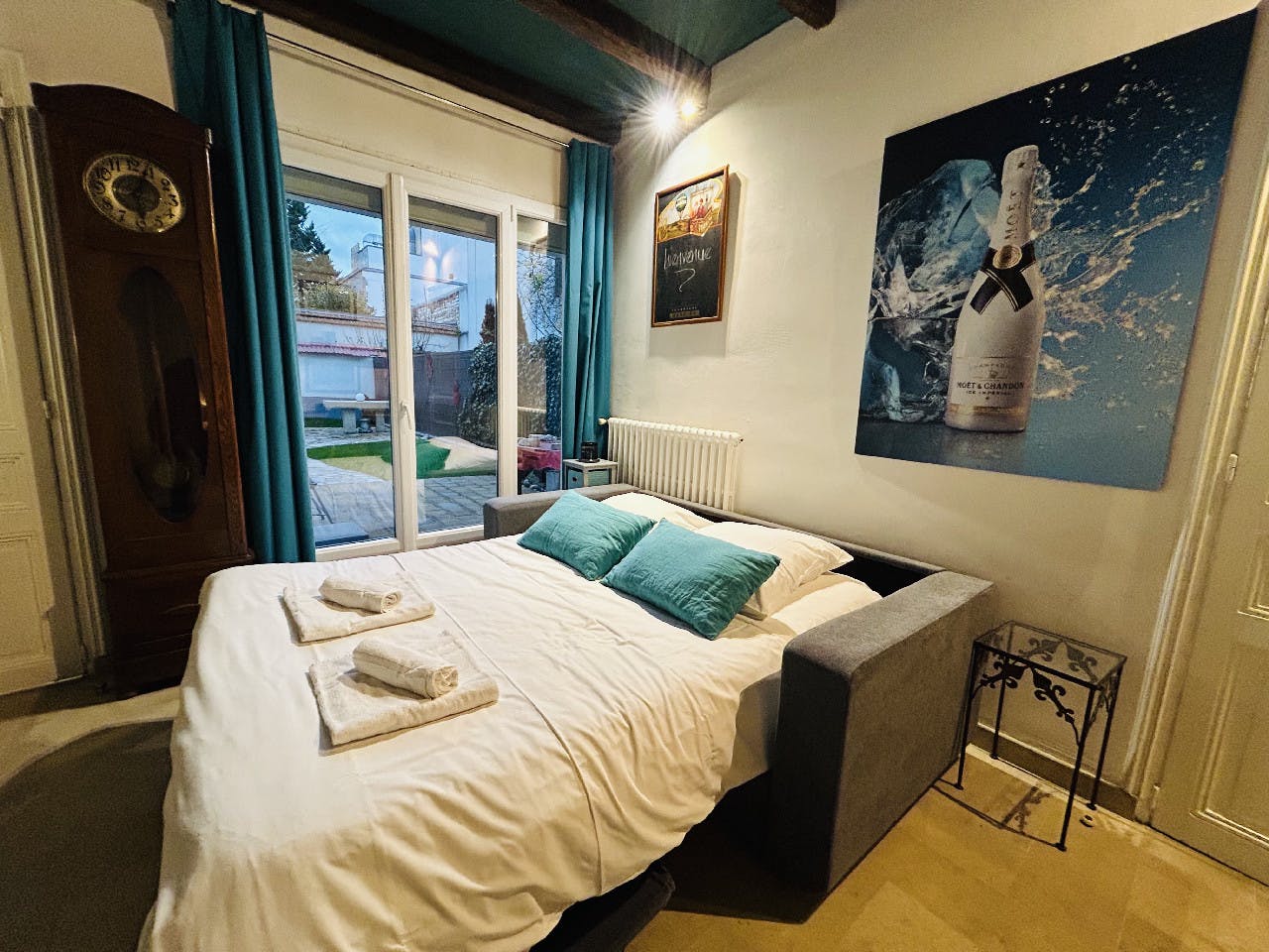 A real independent guest room located in a private Reims property with the addition of a garden in the Hypercentre.