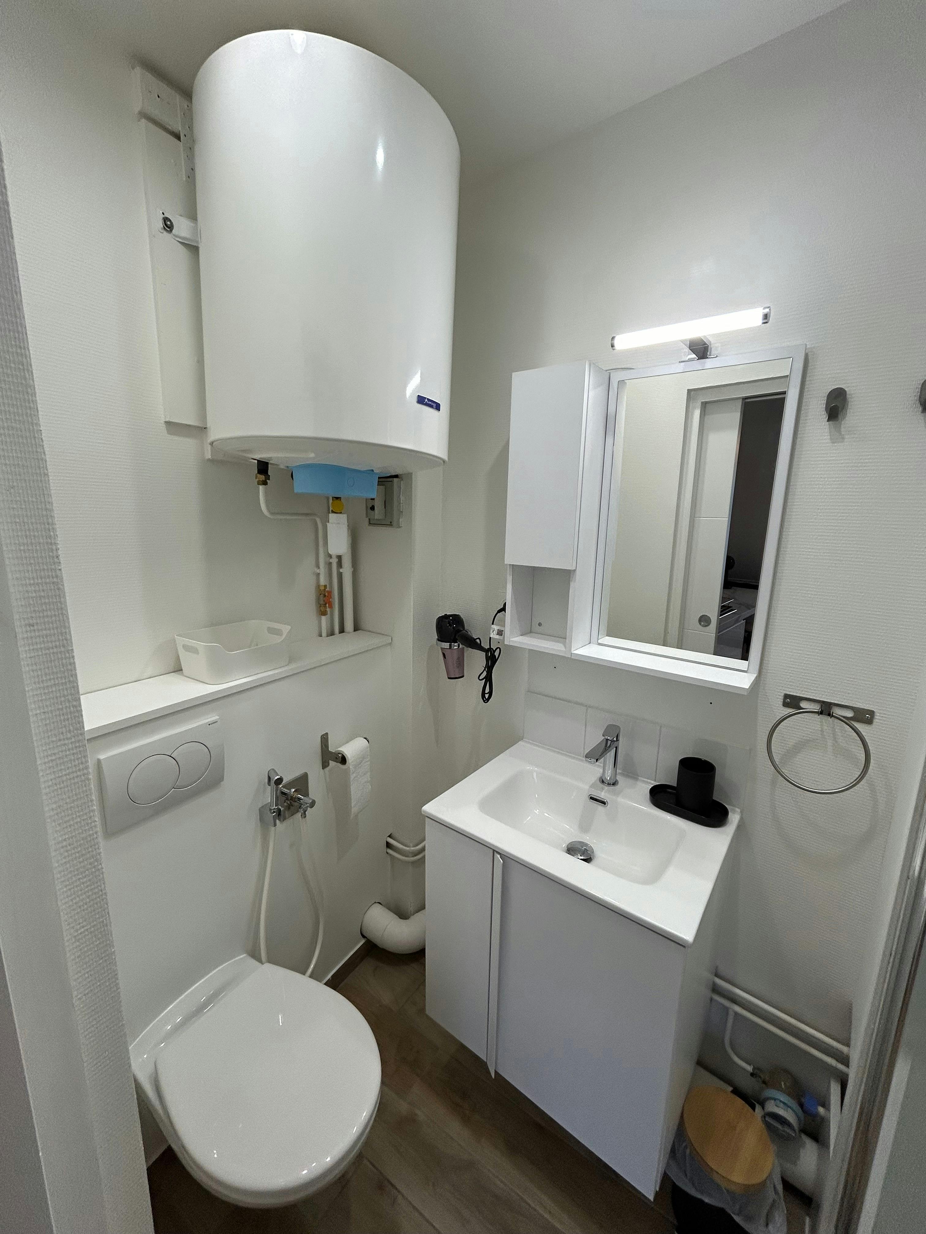 Salle de Douche avec : Entièrement refaite à neuf.