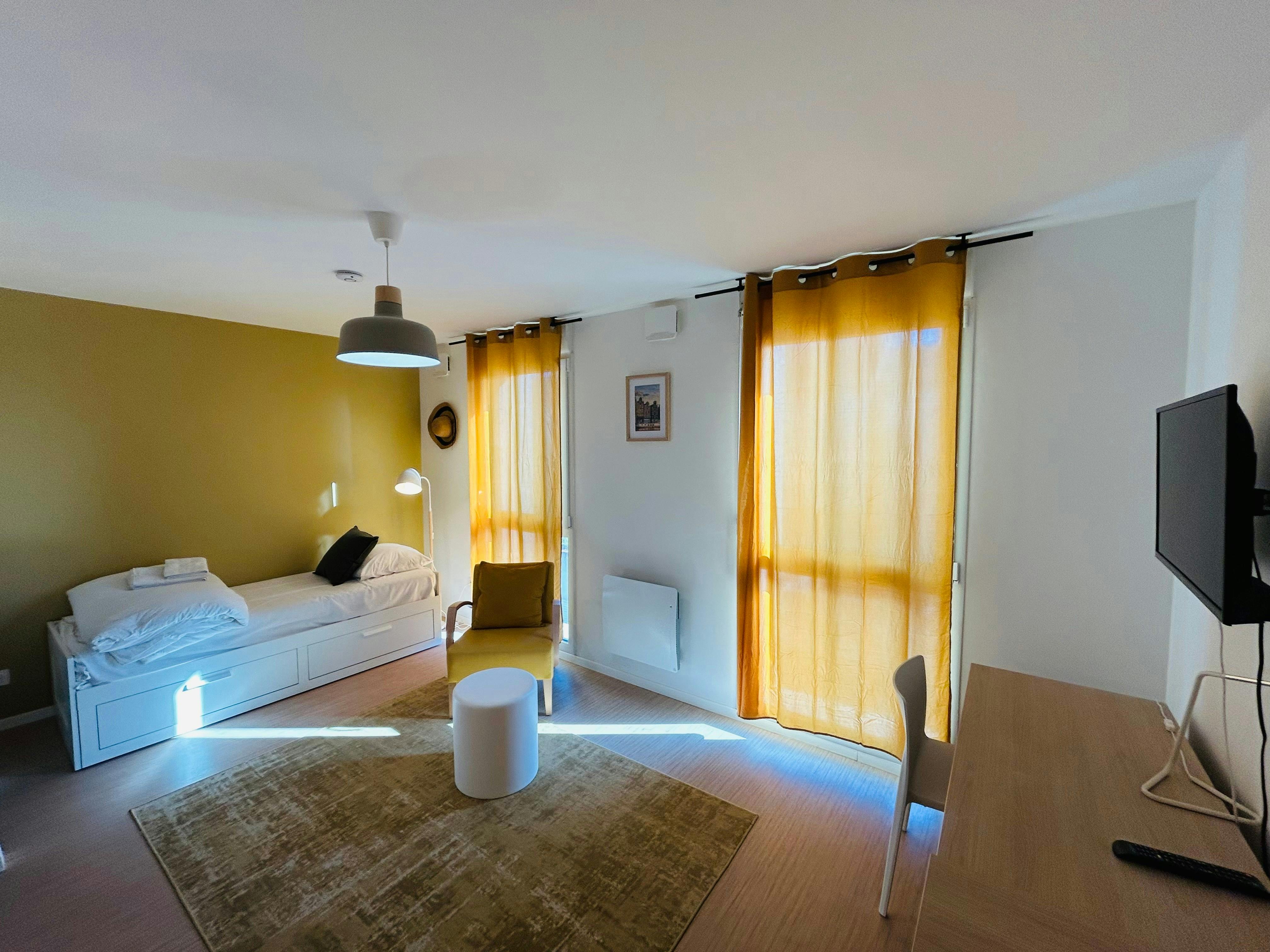 We offer this superb furnished studio in a new building, ideally located in the city center of Reims. Perfect for short, medium, or long stays, this studio offers modern comfort with all amenities included.